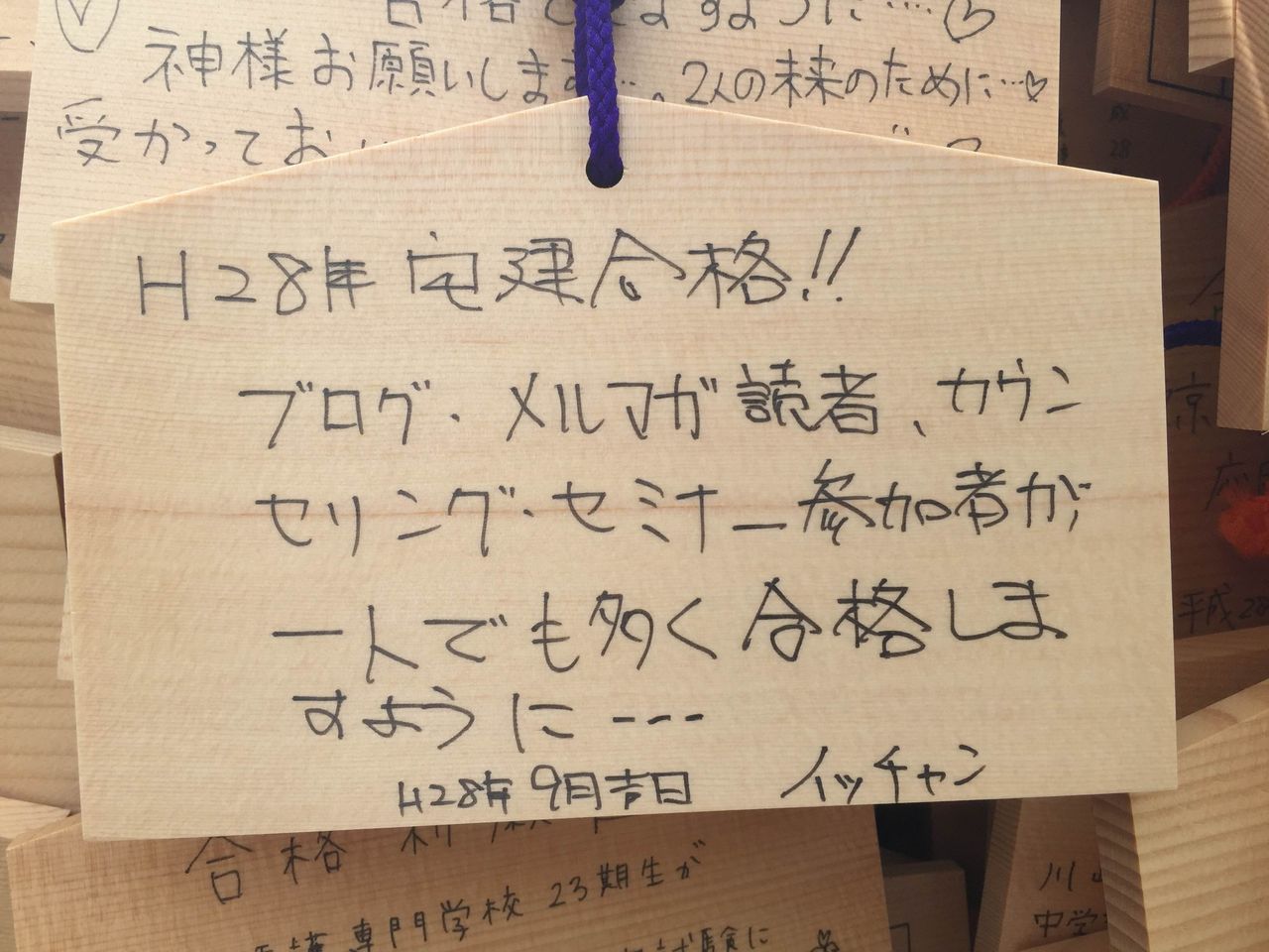 大阪セミナー参加特典の絵馬奉納(1つ)と