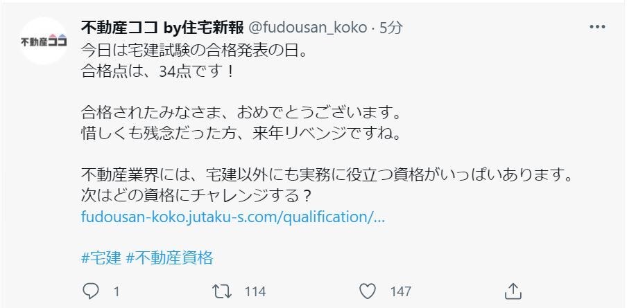 合格基準点と合格率のみが発表されました。